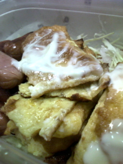 ささ身チーズとトンカツを頼んだ(炒め物は汁がたれるのでもって帰れない)